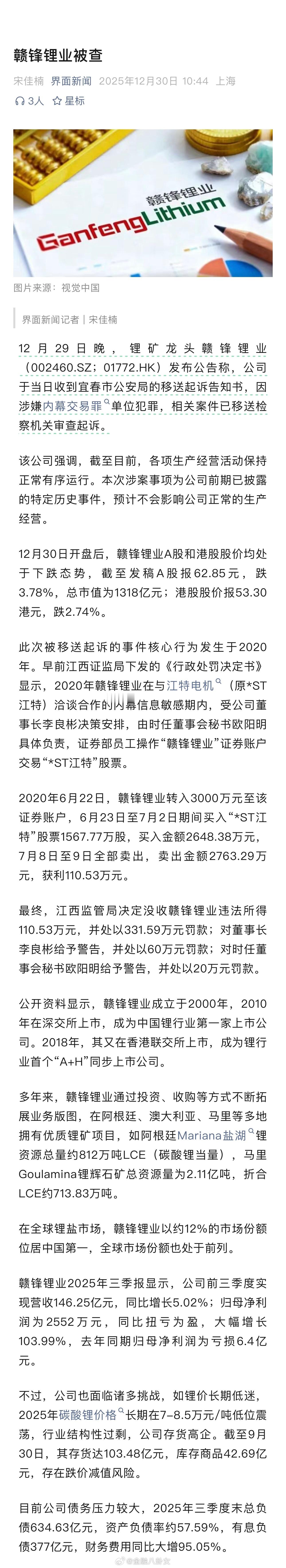 赣锋锂业被查