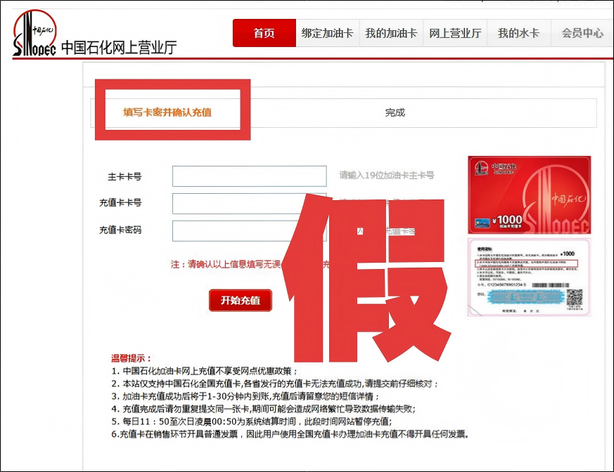 不法分子镜像复制中国石化网上营业厅网站,诱导消费者在线为个人加油卡充值,实际未充值成功,导致网民受骗。