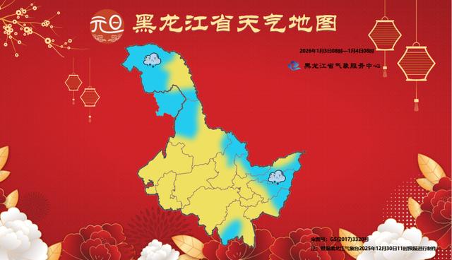 2026年1月3日:大兴安岭西部、黑河西部、伊春北部、鹤岗、佳木斯东部、双鸭山东部、鸡西东部、牡丹江南部有阵雪,其他地区晴有时多云。