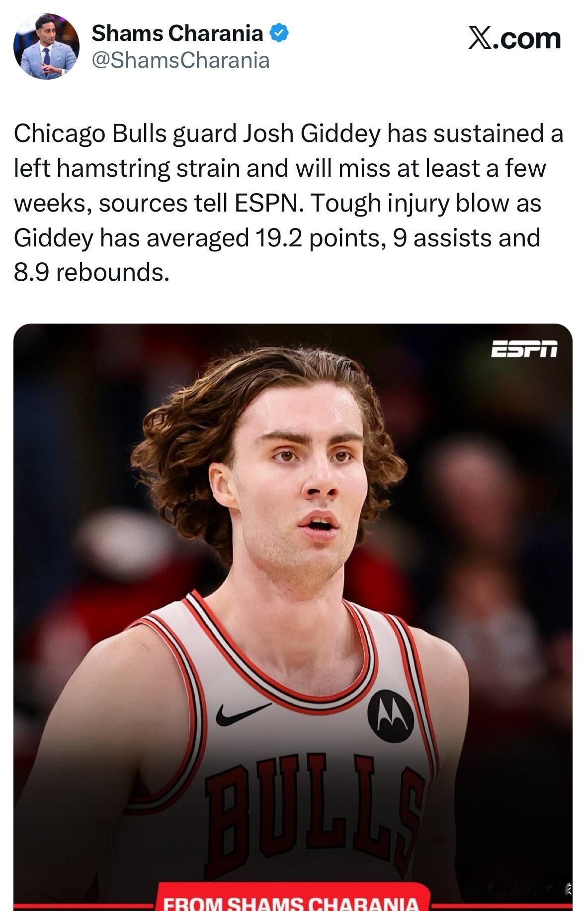 又是拉伤!肖华快管一管吧! 今天,据权威记者Shams报道,公牛队核心吉迪遭遇