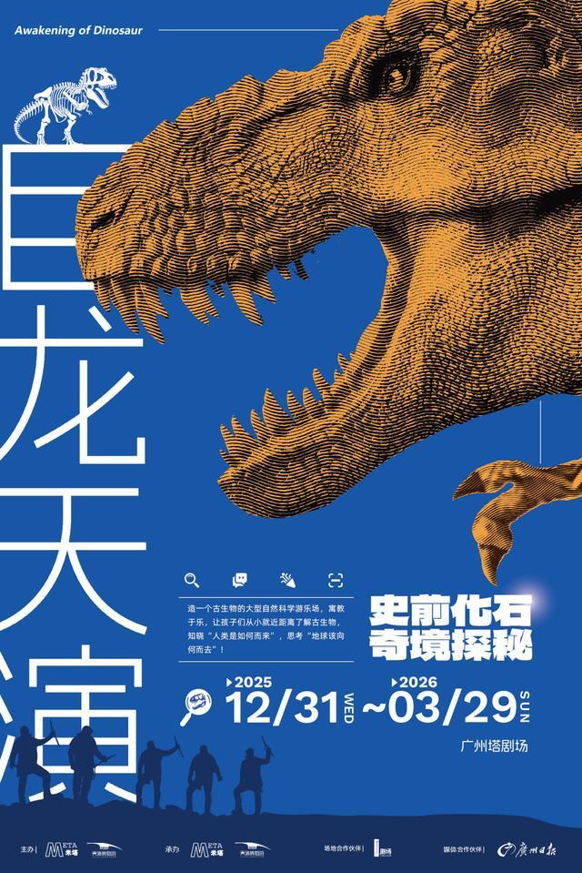 12月31日,“巨龙天演·史前化石奇境探秘”在广州塔剧场启幕。据悉,“巨龙天演”突破传统展览的单一陈列模式,创新融合珍稀化石标本展示、研学互动、音乐演出及VR体验等多元形态,将26亿年生命演化史浓缩于近2000平米的空间,还原恐龙“相爱、孕育、狩猎、覆灭”的史前生命瞬间,让观众在移步观展中直观感受地球生命演化的磅礴历程。活动将持续运营至2026年3月29日。