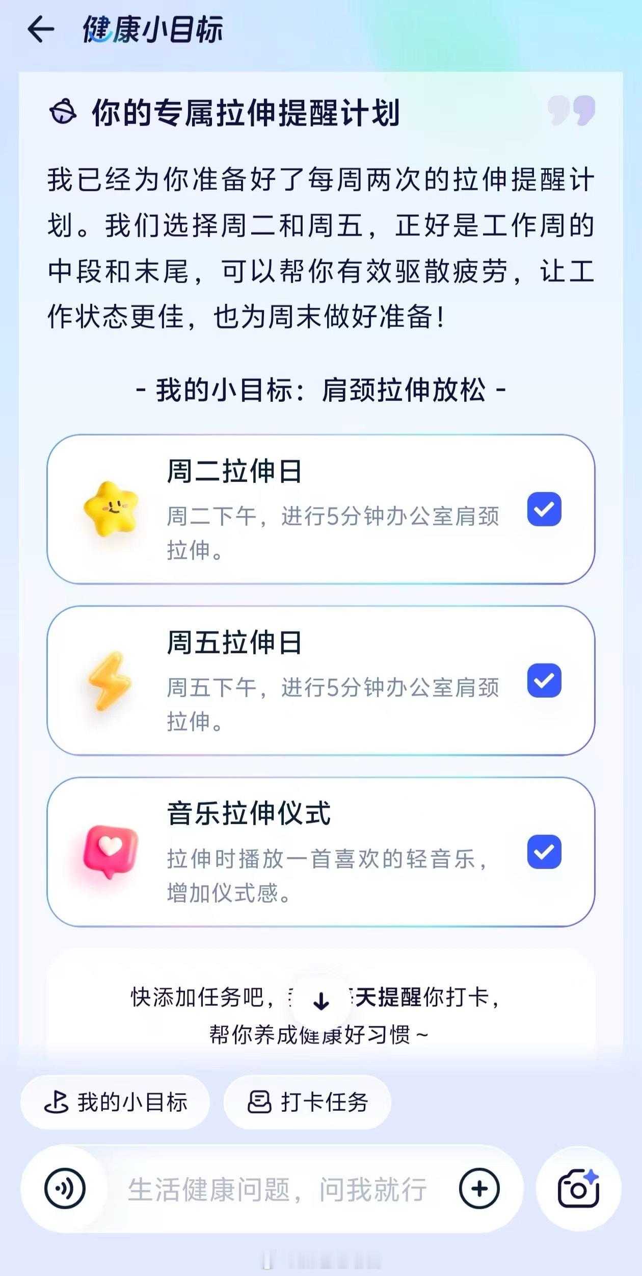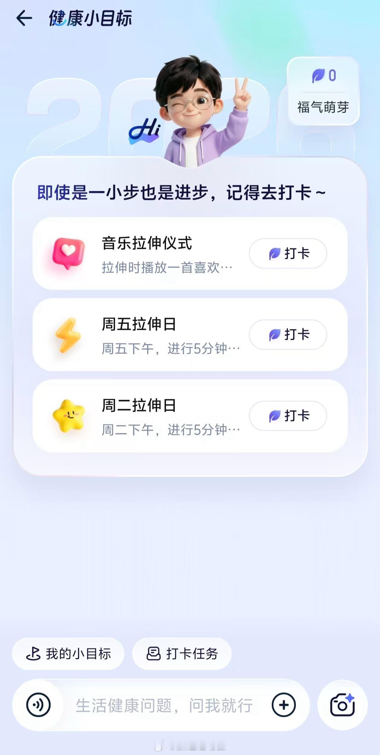 半个娱乐圈都开始卷健康了2026年我也要开始卷自己啦!第一个小目标,把健康焊在人生置顶位!🤘这次不靠口号不靠立Flag啦,用阿福健康定制专属计划才靠谱👇✅工作日跑步+每周2次肩颈拉伸,它每次会自动提醒我“该去跑步啦”✅每日健康饮食规划,连喝水都有温柔的提醒哦,饮食记录轻松拿捏✅23点前入睡提醒+每日记一件开心事,保证睡眠质量才能有更加蓬勃稳定的情绪2026年或许还有很多的不确定,但是有一件事可以特别确定,就是健康才是我们最大的福气!新的一年,和阿福一起攒满活力,稳稳接住所有好运✨