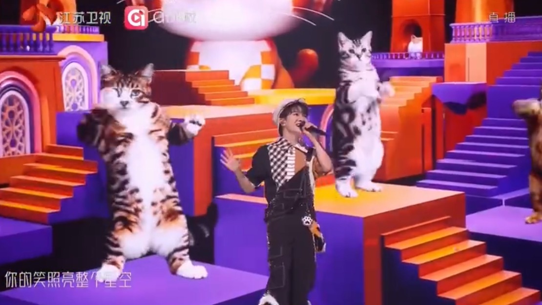 周深舞台上有五只猫周深超萌版《扑通扑通》舞台谁能移开视线啊,整个舞台五只ai小猫