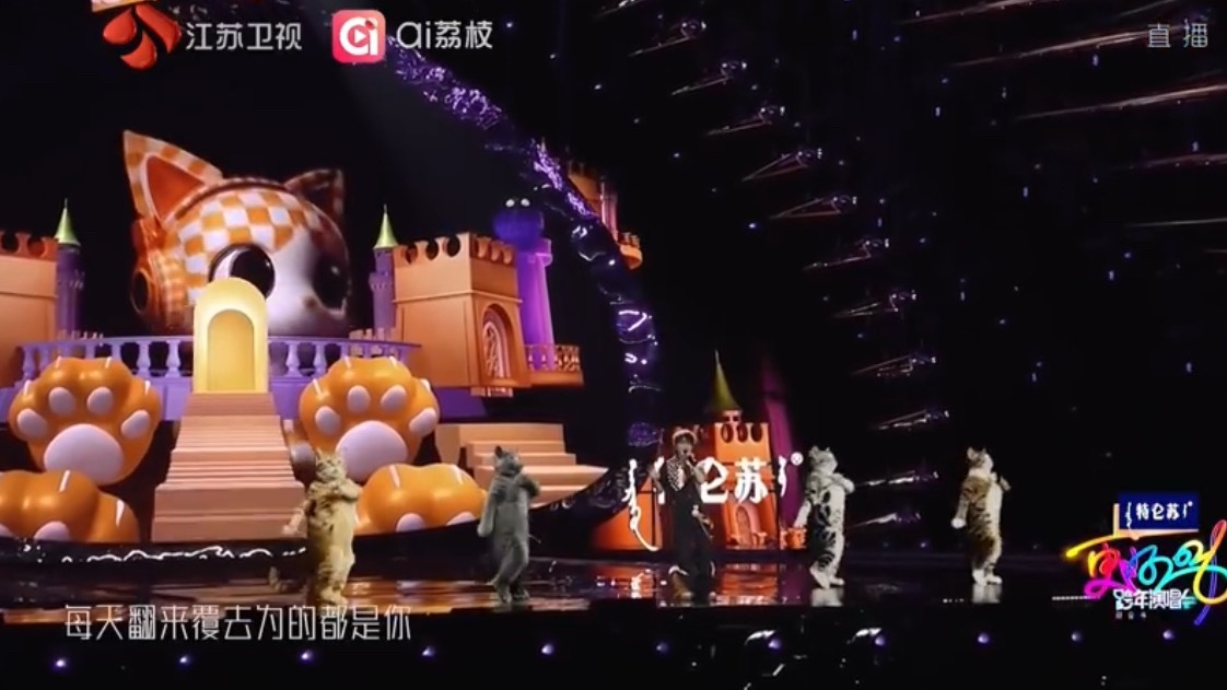 周深舞台上有五只猫周深超萌版《扑通扑通》舞台谁能移开视线啊,整个舞台五只ai小猫跳舞➕周深这只可爱咪一共六只,简直要把我萌化了江苏卫视跨年