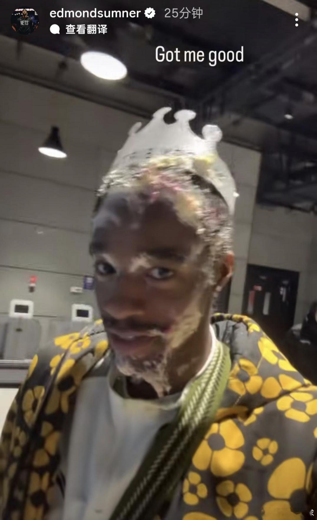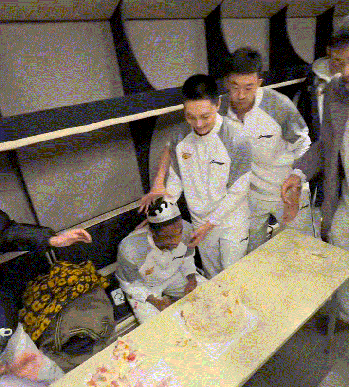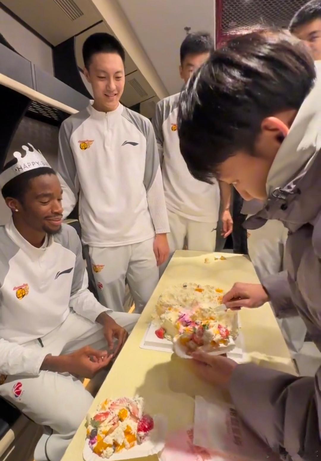 哈哈萨姆纳好自觉,乖巧地坐等被拍蛋糕奶茶哥还透露了生日愿望:明天赢下北京男篮!