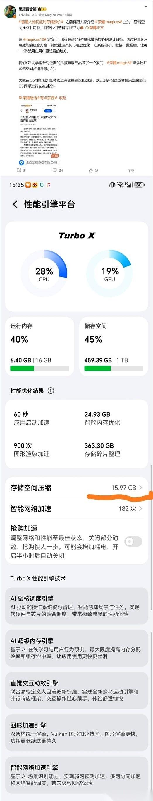 牌桌上,所有手机厂商都在喊:没办法,上游内存涨疯了,手机只能跟着涨价。 话音还没落,荣耀那边什么也没说,直接往系统里塞了个叫“存储空间压缩”的开关。 找到它,手指点下去,看着进度条走完,之前还一片红的存储条,瞬间空出来一大块,最多能腾出15个G。 这一下,空气安静了。 别人都在讲成本的故事,把压力甩给用户。你得掏更多的钱,买一个“不得不涨价”的手机。 他直接换了个剧本。不动硬件,不跟你谈成本,就在你看不到的系统底层下功夫,硬生生把你的旧空间,挤出了新价值。 这边是加法,那边是减法。 一个是要你多花钱,一个是帮你省着用。 所以这到底是技术问题,还是态度问题?