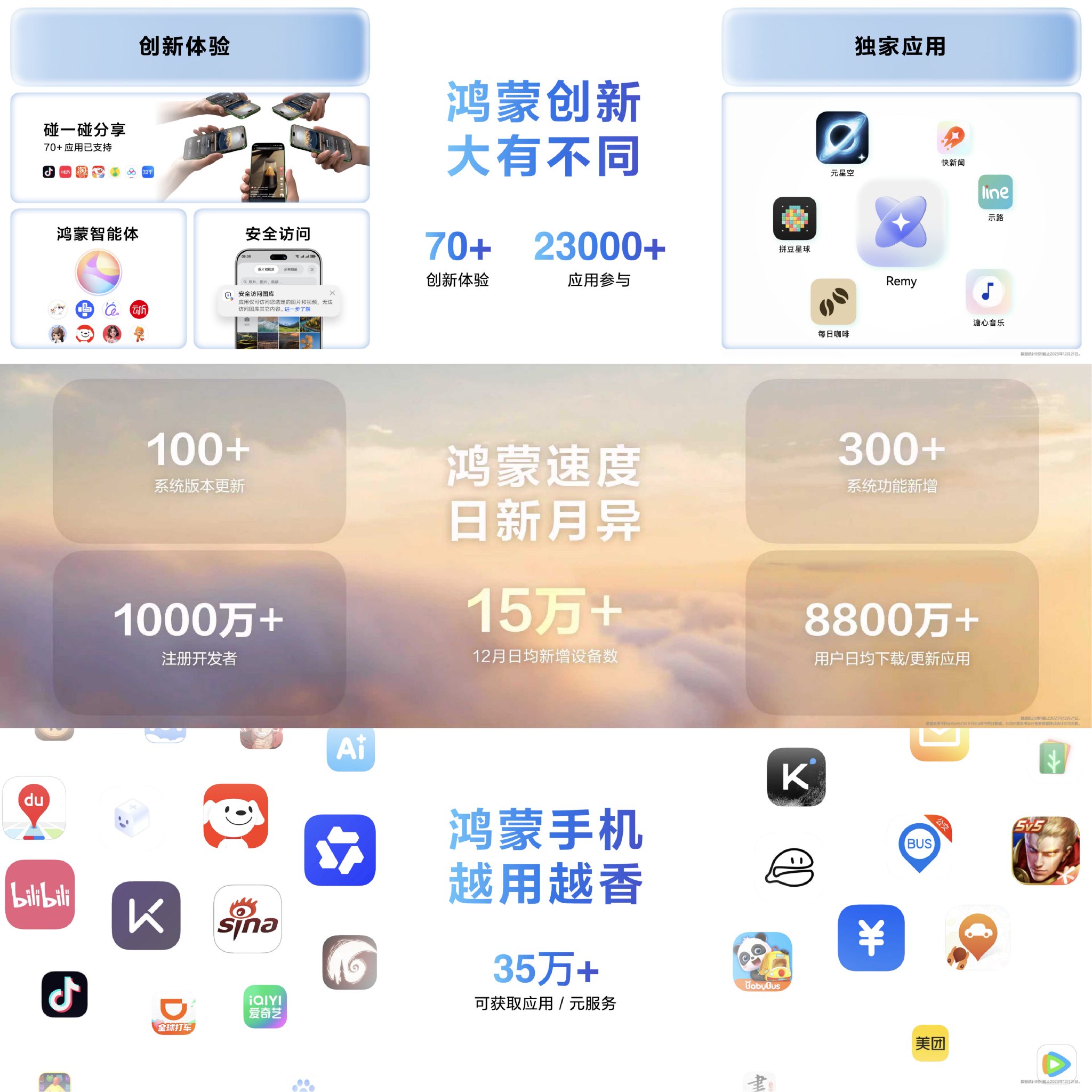 以前的鸿蒙也曾不被看好,但是系统和做知识产品一样,没有速成,没有捷径,鸿蒙也是一步步走过来的,现在变得越来越好;确实他讲的也非常中肯,还有很多数据支撑,比如12月鸿蒙日均新增设备数达到15万+,注册开发者超过1000万等等这些数据都代表着鸿蒙生态从能用到好用。作为老用户的我也是看着过来的,现在鸿蒙5和鸿蒙6终端设备数量已突破3600万台,可获取应用和元服务数量超35万,2025年是鸿蒙生态走向成熟好用非常有代表性的一年,在这个跨年舞台上,看到鸿蒙真的挺感动。还有感觉小艺是真的越来越棒了,能协同各类智能体做那么多事情,现在用户体验层面也已经到了一个nextlevel,可以说是越用越香!#与鸿蒙共赴下一个1000天#