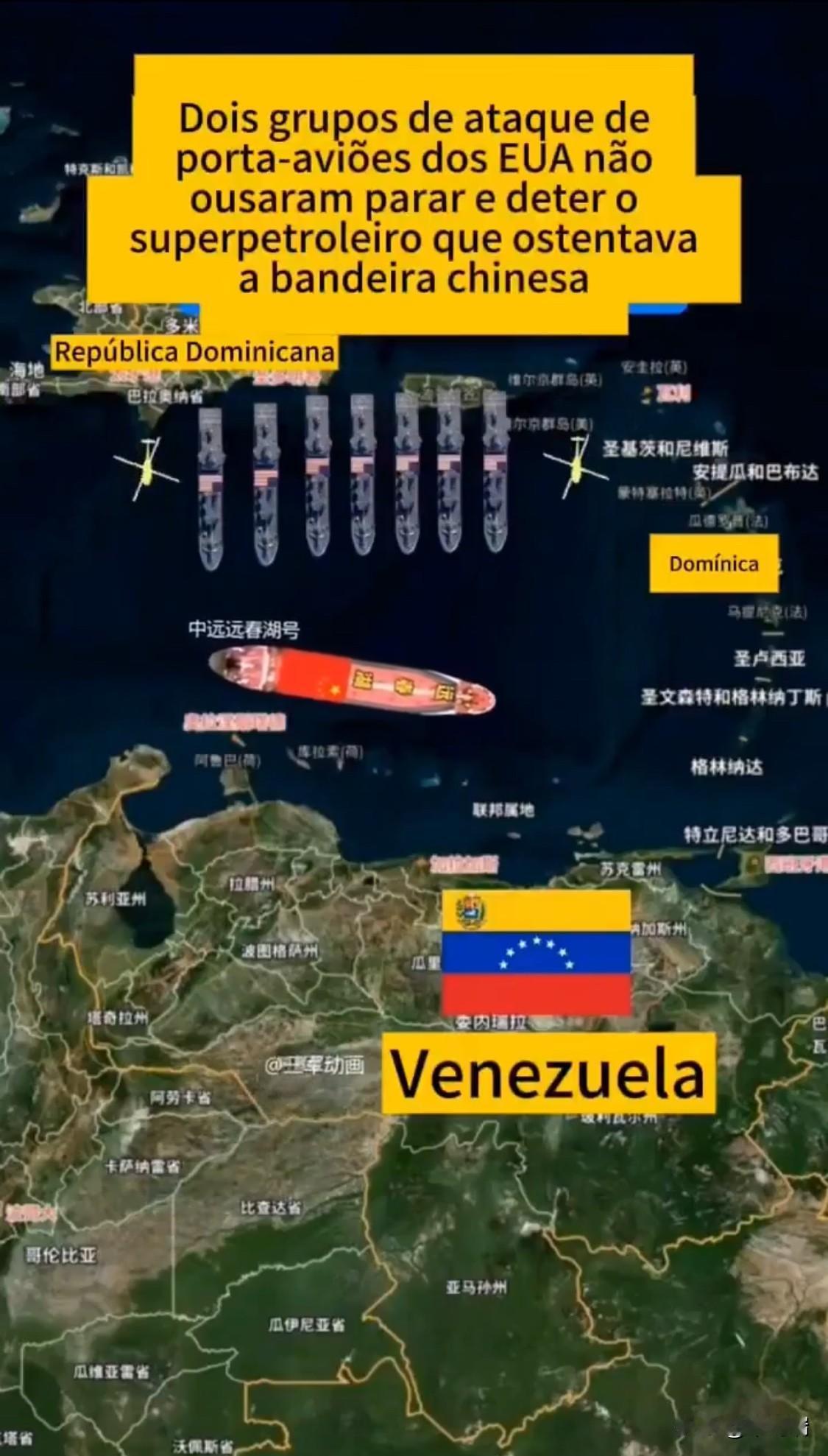 “12月25日,一艘中国油轮“中远远春湖号”从委内瑞拉港口出发,船上装载着200万桶原油,驻扎在加勒比海的美国舰队只是眼睁睁地看着它驶过。”