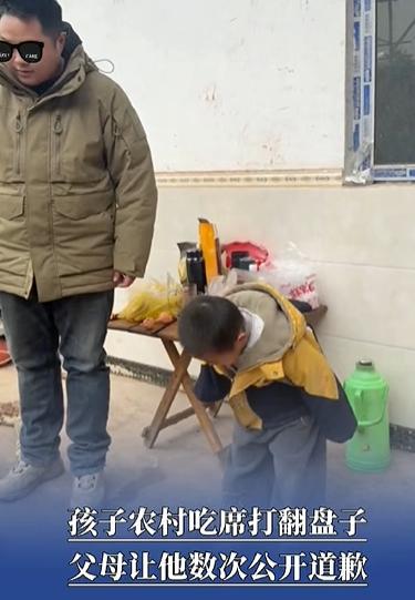 吵翻天!四川雅安,一对夫妻带着儿子去农村吃席,没想到,期间孩子想闻一下菜的味道,却意外把盘子打翻,男孩立刻和妈妈解释,可妈妈却没有照顾他的情绪,反倒是让他和吃席的所有人道歉,而且要挨个道歉。这个做法也引起了不少讨论。 12月29日的四川雅安,冬日农村的流水席本该是充满了划拳声和碗筷碰撞的热闹劲儿。但这喧嚣里,这一天却意外夹杂着一个被吓坏了的小男孩的抽泣。事情的起因简单得让人甚至觉得不值得一提:一个孩子,对着满桌的色香味动了那一瞬间的好奇心,他不想吃,只是想凑近闻闻那盘菜的香气。 这本该是童年里关于馋嘴的一个可爱瞬间,却因为那双小手没拿稳,成了这一家子在那场宴席上“至暗时刻”的导火索。盘子翻了,菜洒一地,还没等周围人反应过来,孩子那带着惊慌的解释就已经脱口而出:“我就是想闻闻味道。” 这话里藏着潜台词,我知道闯祸了,但我真的不是故意搞破坏。如果是哪怕稍微松弛一点的父母,这会儿多半是两句话的事:一句是安慰受惊的孩子,一句是向同桌的宾客赔笑脸。但这把“教育的戒尺”,在此时此刻却被狠狠高高举起,且毫无缓冲。 母亲的第一反应并不是去接住孩子那摇摇欲坠的惊恐,而是把这一刻当成了树立家教威严的绝佳展台。“你闻一下别人都不吃了!给所有人说对不起!挨个说,大声点!”这几句带着火气的指令,瞬间切断了孩子试图沟通的所有退路。 紧接着出现的画面,让屏幕外无数看着的陌生人都觉得心里发紧:一个强忍着眼泪的小男孩,被这一道严令推着,像是一个犯了天条的罪人,不得不把这原本欢庆的吃席现场,走成了一条漫长的“游街示众”之路。 农村的席面讲究的是人情味和宽容。当孩子真的战战兢兢地挨个桌子鞠躬、带着哭腔道歉时,周遭宾客们的反应其实就是最好的一面镜子。大家伙儿看着孩子那委屈样,本能地都在伸出手摸头安慰,嘴里说着“没事没事”。 成年人的世界里,谁会真跟一个为了闻菜香而打翻盘子的稚子计较?可恰恰是这种周围人的温柔,反衬得父母的决绝格外刺眼。孩子在宾客的安抚下哭得更伤心了,这种心理逻辑其实不难理解:外界越是原谅,越显得父母逼迫他进行的这场“忏悔仪式”有多么多余和沉重。他在那一刻感受到的不是“我学会了负责”,而是“为什么全世界都觉得没关系,只有爸妈觉得我不可饶恕”。 如果你以为“挨个桌道歉”就是这场风暴的终点,那还是低估了这对父母对于“责任感教育”的执念。在那之后,更让人意想不到的一幕发生了:作为父亲的角色介入了,但他不是来收场的,而是将这出戏推向了更高潮,孩子被直接拉到了戏台子上。 在这个原本应该用来庆祝或表演的高处,小男孩被迫再次对着全场几百号人鞠躬、道歉。这一刻,那个小小的身影在聚光灯下显得那样孤单。这不是什么关于担当的庆典,而是一次被彻底放大的公开处刑。 讽刺的是,事后孩子的父亲在视频下留了一段极具情怀的文字,大意是寄语一二十年后的儿子,希望他明白父母愿意陪他探索世界、一起犯错,只要勇敢沟通,就没有过不去的坎。文字写得漂亮极了,充满了一个开明家长的哲思与温情。 可当你把这段文字和那个在台上瑟瑟发抖、满脸泪痕的现实画面叠在一起看时,那种割裂感简直要把人撕开。那个当众鞠躬的孩子,在那个当下,真的感受到了“一起犯错”的松弛吗?还是只记住了几百双眼睛盯着自己时那种如芒在背的羞耻? 这场发生在雅安席间的风波,像一把尖锐的手术刀,剖开了某些中国式教育里最隐秘的痛点。我们太容易把“让孩子长记性”等同于“让孩子丢面子”,甚至下意识地觉得,只有痛感足够强烈的羞耻,才能锻造出所谓的责任心。 有人还在为这“教科书式的担当教育”叫好,觉得这一顿打翻的饭菜,换来孩子一辈子的不敢造次很划算。但这笔账真的算对了吗? 那一盘菜多少钱?那个被打翻的盘子又值多少钱?或许也就百八十块。但一个孩子在众目睽睽之下被碾碎的自尊,他对父母那种天然信赖感的崩塌,这份代价可能要昂贵得多。 这种心理上的“内伤”,看不见血,却可能伴随那个孩子走很远的路。等他真的一二十年后回头看,记住的恐怕不是那顿没吃成的席,而是那个怎么洗都洗不掉的、觉得自己无地自容的下午。