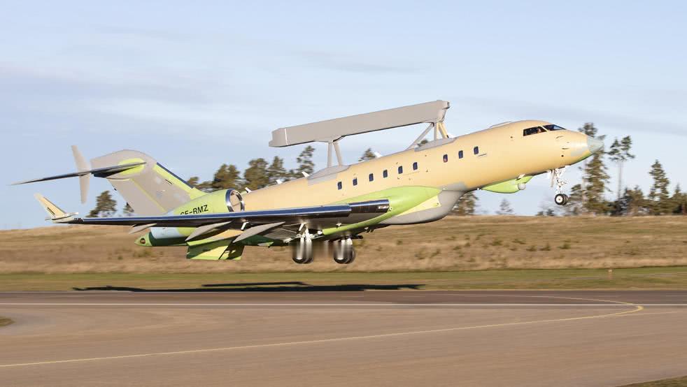 价值13 亿美元,法国订购两架萨博“全球眼”预警机,并可能追加采购两架。这些“全球眼”预警机将取代法国现役的四架波音E-3F SDCA预警机。 “全球眼”预警机采用庞巴迪“环球”6000/6500大型公务机平台改进而来,长30.3米、翼展28.7米、空重23.691吨、最大起飞重量约45吨。巡航速度可达904千米/小时,实用升限15545米,航程11112千米。 机背上配备萨博“爱立眼”ER双面电子扫描阵列雷达系统(每侧覆盖约150°扇区)。雷达天线采用氮化镓半导体材料制成的固态发射/接收模块,最大探测距离超过650千米(对战斗机大小目标的探测距离约为425公里),可同时探测、跟踪超过300个空中或水面目标;对巡航导弹、隐身飞机等小型或低可观测目标有较强探测能力。 此外,该机的机身下方整流罩内装有莱昂纳多集团“浪花(Seaspray)”7500E雷达,探测距离可达590千米,支持合成孔径雷达模式,可识别小至潜望镜大小的海上目标或地面车辆。同时该机还配备有赛峰380HD光电/红外传感器,以增强对海陆目标的监视能力。“全球眼”预警机持续巡逻时间可达13小时。 “全球眼”预警机的机体尺寸较小、维护成本较低、续航时间与大型预警机相当,且具备对空、对海、对地三任务能力。但其配备的平衡木雷达存在前后各30度左右的探测盲区,且对目标测高精度较低。