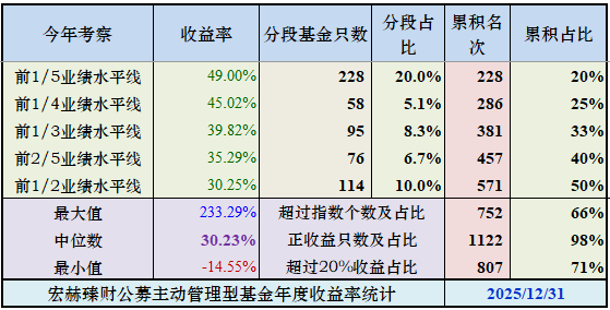 今年有98%的参比主动管理型基金实现了正收益,有71%的基金实现了超过20%的收益率,从收益上看是个基金的丰收年。