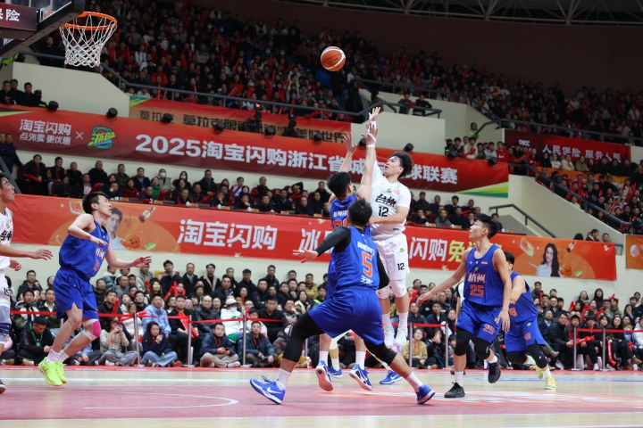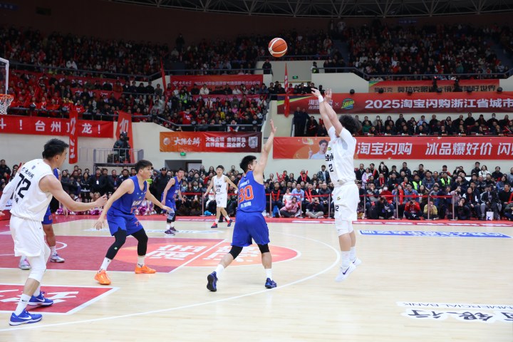 不是说台州队,而是两队都上演了一波“三分雨”。先是第三节,杭州队吕升平在陈洋的助攻下以一个三分球拿下杭州队在下半场的首个进球。
