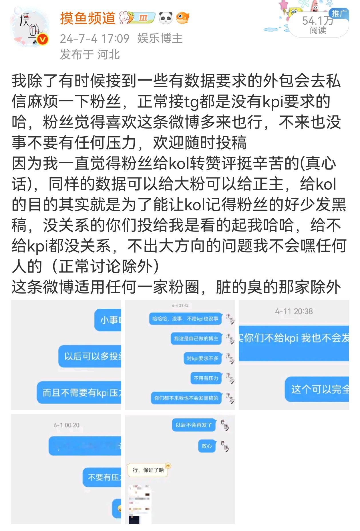 家人们给我投红稿不用担心kpi的事因为有粉丝跟我说想给我投自己偶像红稿,但是又怕粉丝体量比较少,我会不开心。完全不存在,完全不存在,我自己平时很少刷首页,所以发的红大部分来自于投稿,除了一些接到的单子有甲方的数据要求,或者我有几个关系比较好的粉丝,我才会去联系,其他时间我都没有数据要求的,放心投给我,没有KPI也没事的,我不会因为没有KPI就去黑你们的,放100个心 同样的话之前也说过很多次,大可不必有这个顾虑,我自己发微博都是天天碎碎念,也不是每一条数据都很好看,又怎么会去要求粉圈呢?我没有立场也没有资格,大家都是平等的诡秘