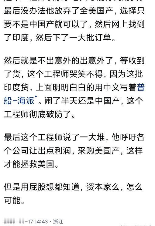 美国再工业化却没工人了! 懂王现在再也不喊制造业回归了,因为发现即使制造业回到美国,目前也回不去。首先美国没有足够的产业工人,美国人最喜欢的就是学医和学法律,然后普通人还喜欢做网红,要不然做一些更普通的职业或服务业,就是不愿意进工厂。 要知道经历过工业化的国家,完成了去工业化,民众是对重回工厂,是非常深恶痛绝的。无论工厂有多么的条件好,也很少有人去。有一个制造业大王,说过年轻人宁愿送外卖和跑快车,也不愿意进厂,深感不解。 因为进厂被限制的没有自由是第一,收入不高是第二,就送个外卖,送过快递,跑个快车,挣的都比进厂挣的多,而且还轻松。所以咱们作为制造业大国,都面临着年轻人不愿意进厂的事实,那么那些美国这样的经历过去工业化的国家,和欧洲也一样,都不愿意重新进工厂。年轻人不愿意被工厂所束缚,这就是事实。 不过无人化工厂正在重新开始,后续工厂就会慢慢地减掉人手,这是事实。但是即使无人工厂在大量起来,美国也竞争不过咱们,这就是工业化。去工业化之后想要再次工业化,那是非常困难。