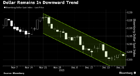 彭博美元即期指数下跌0.1%,录得12月24日以来的首次回落。