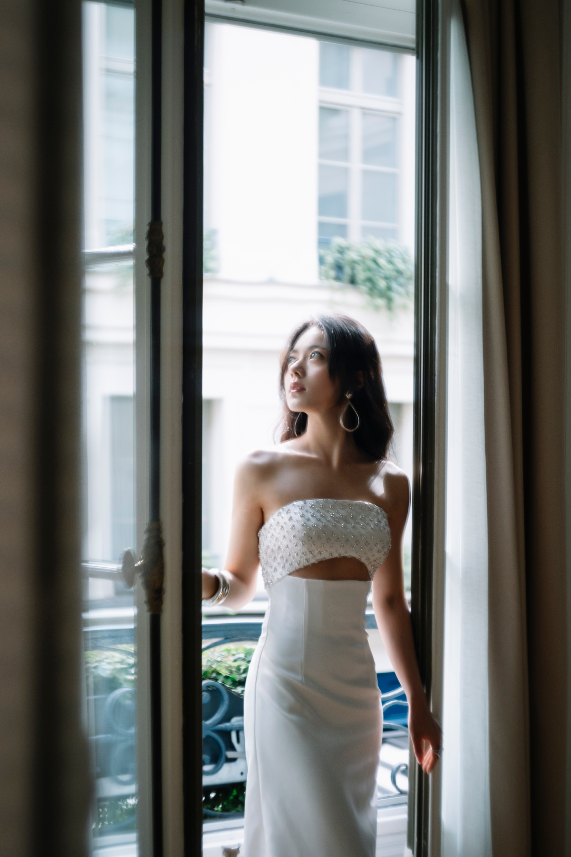 赵今麦美腿图集,白裙柔美,俏皮可人。赵今麦