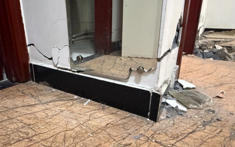 墙面多处裂缝,客厅地面明显下沉