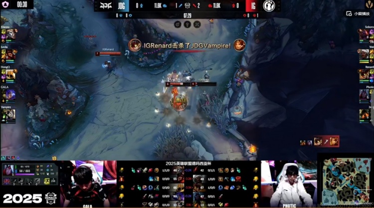 [26:30]野区遭遇,iG打出1换5团灭JDG,从中路一波结束首局比赛!