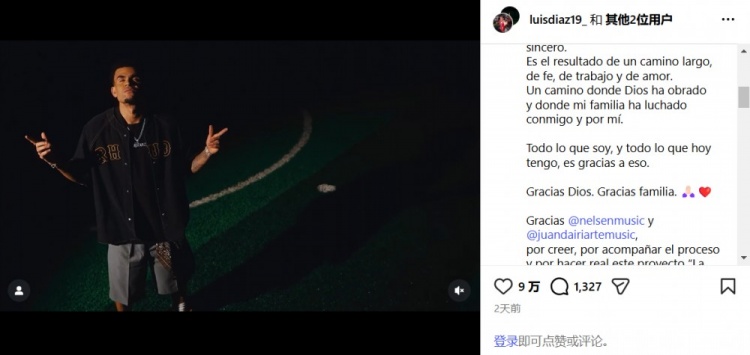 直播吧1月3日讯拜仁球星路易斯·迪亚斯不仅有着出色的进球能力,哥伦比亚人也是一位音乐爱好者。在新年来临之际,迪亚斯在INS上发布了一段音乐视频。特别之处在于,这是他个人第一首单曲的官方MV!
