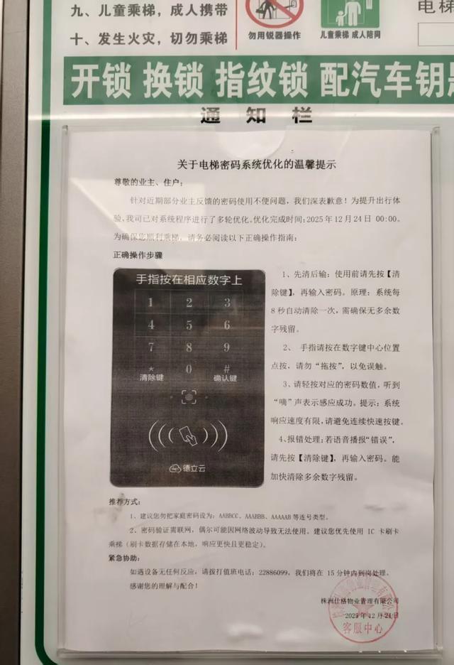 小区楼栋设立“梯控”的温馨提示。