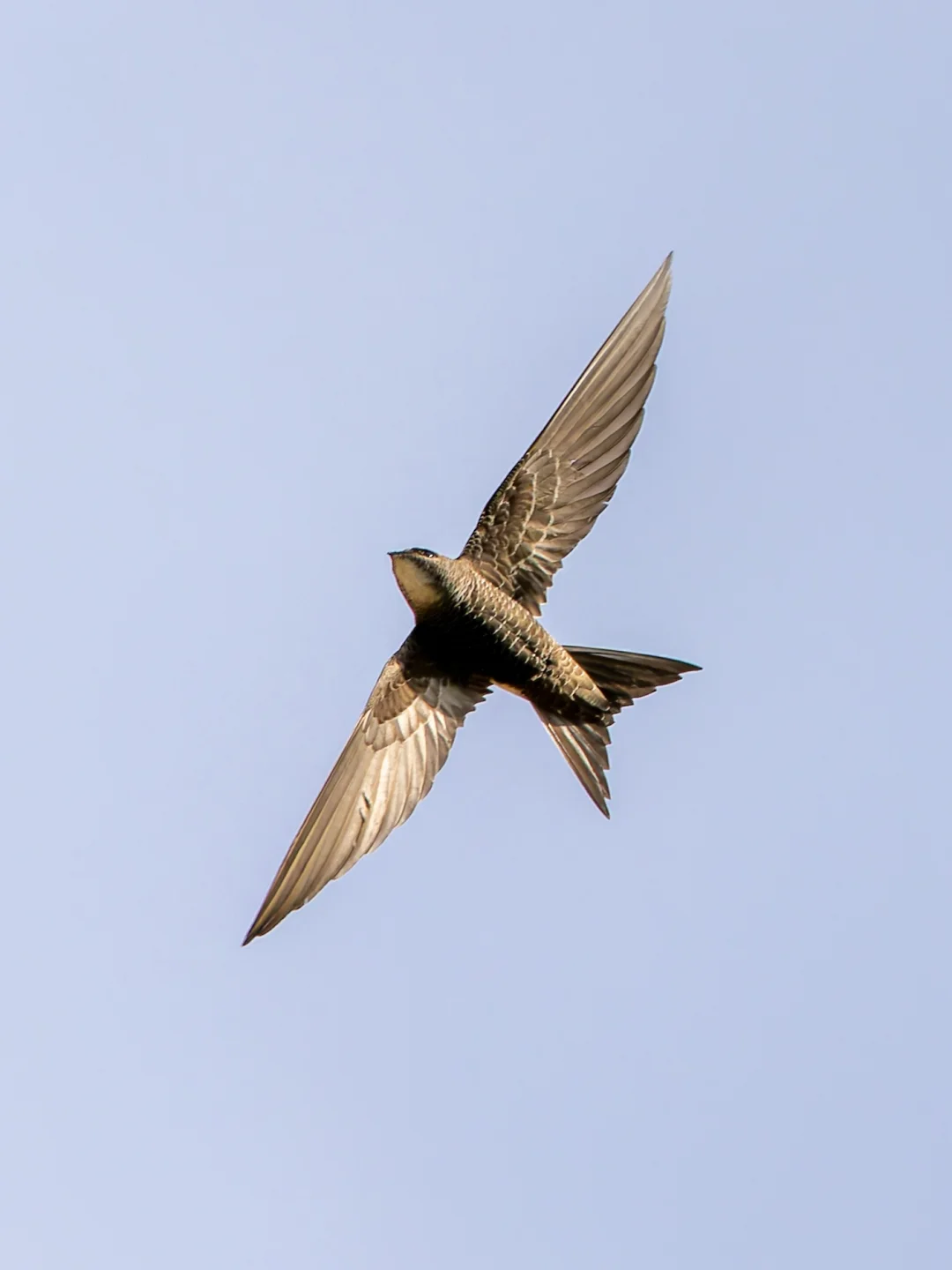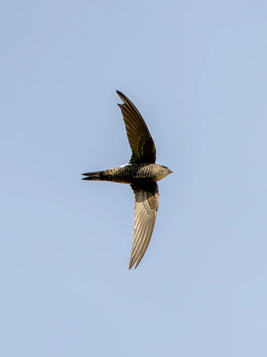 原创拍摄于2025.07 白腰雨燕,Pacific Swift,雨燕目雨燕科雨燕属。是一种大型的雨燕,广布于东亚到澳大利亚。 白腰雨燕的飞行姿态非常丝滑,全身暗色,腰间有白色斑点,喉部灰暗。腹部有鳞片状外观,加上分叉的鱼尾,超级像一只在天空快速飞过的鱼🐟。 这一群小飞鱼是发现在马蹄寺三十三天石窟上筑巢繁殖的。