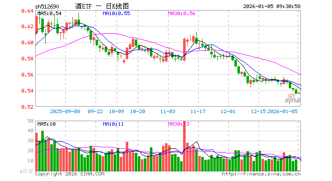 1月5日,酒ETF(512690)开盘涨0.00%,报0.536元。酒ETF(512690)重仓股方面,贵州茅台开盘涨0.57%,五粮液跌0.04%,泸州老窖涨0.00%,山西汾酒跌0.07%,洋河股份跌0.08%,今世缘跌0.20%,古井贡酒跌0.17%,青岛啤酒涨0.07%,燕京啤酒涨0.36%,酒鬼酒跌0.05%。
