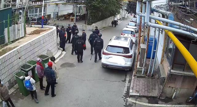 老人带领大批警察上门。网络截图。