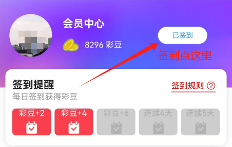 连续4天签到:获取8个彩豆