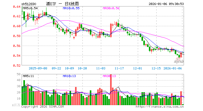 1月6日,酒ETF(512690)开盘涨0.00%,报0.546元。酒ETF(512690)重仓股方面,贵州茅台开盘涨0.46%,五粮液涨0.02%,泸州老窖涨0.00%,山西汾酒涨0.29%,洋河股份涨0.05%,今世缘跌0.03%,古井贡酒跌0.26%,青岛啤酒涨0.05%,燕京啤酒涨0.00%,酒鬼酒跌0.81%。