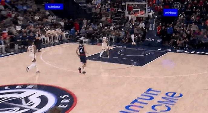 第二节比赛,乔丹-米勒抢断反击一条龙双手暴扣,快船领先勇士10分。