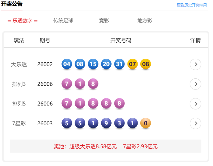 大皖新闻讯1月6日晚,中国体彩网更新了彩票开奖公告,其中,7星彩开出1注一等奖,奖金500万元。具体如下: