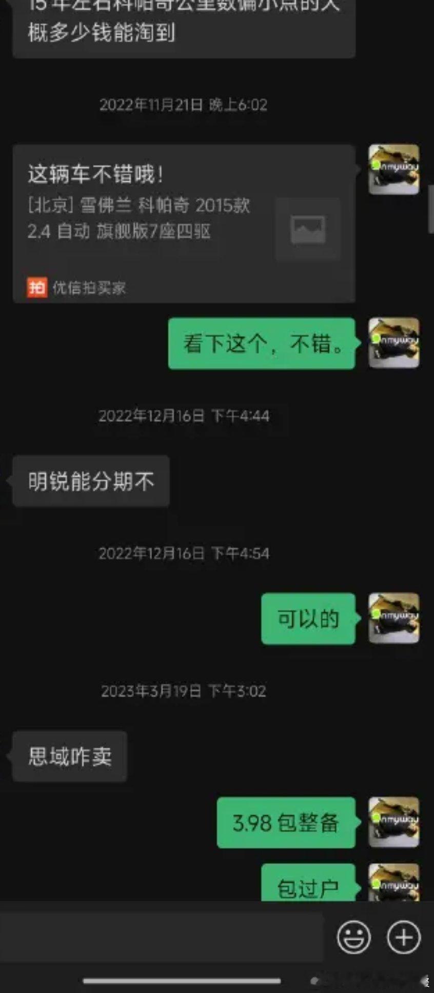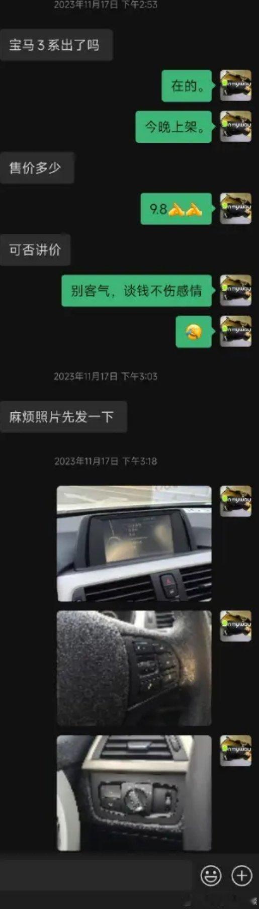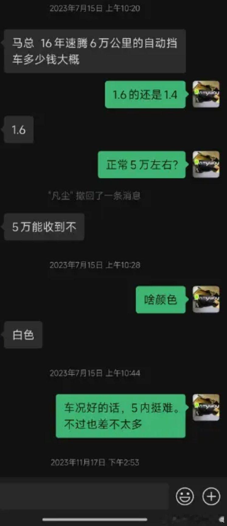 马力玩聚老马在路上 分享一个2022年9月加的车友没有恶意反正不是实名我就不打码遮挡名字了挺有意思的问价-消失砍价-消失哈哈哈我相信每个车商vx里都有这样的客户! (为了不上升到个人,我还是截图只体现沟通内容)