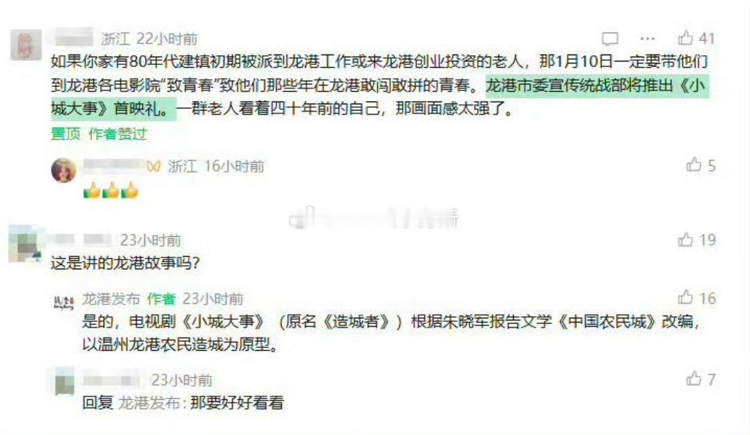 赵丽颖小城大事开播之后,原型城市龙港市官方将邀请市民朋友免费去各大电影院观看首映