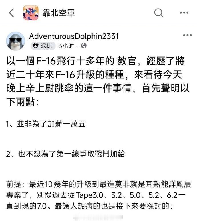 围台军演刚结束,台军一架F-16坠毁,飞行员下落不明 据环球网报道。1月6日晚,台军一架F-16战斗机从花莲基地起飞后,执行例行夜间训练科目,在返场期间突然发生故障,飞行员跳伞逃生,飞机坠毁。随后台军迅速派遣C-130运输机前往事发区域搜救,然而经过一晚上的搜索,截止1月7日上午,仍未找到飞行员(图1)。 东部战区的围台军演刚刚结束,台军F-16就失事坠机,台军的真实水平如此拉胯。而且这架F-16战机是在F-16A基础上,由台当局所谓“凤展专案”升级为F-16V标准的F-16AM战机。 然而,经过这个所谓“凤展专案”改造过的F-16已经发生7次坠机事故。随后有自称台军飞行教官在网络上爆料,称这次失事很可能正是“凤展专案”的原因。 所谓“凤展专案”改造了F-16战机的模块化任务计算机,由美国洛马和台“汉翔”公司联合操作。但这套系统有个隐藏故障,会导致飞机姿态显示信息错误,而报道称这次的F-16失事时,飞机很可能正在云层中无法判断方向,最终导致失事。 这名飞行教官还表示这个故障发生频率很高,触发条件包括但不限于计算机存储容量不足、程序不稳定等。而目前台军拥有139架F-16战机,全部升级到了所谓F-16V的水平,也就是说这些战机的系统很可能都会有这个隐患。 不仅如此,这名台军资深飞行教官还爆料称,即使F-16升级到了F-16V的水平,仍然其雷达告警系统依然无法对解放军的雷达做出有效反应,甚至连识别雷达方向都经常出问题。这也让不少飞行员感到不安,选择提前退役,2026年内,就会有近110名飞行员服役期结束退役。 一款被“台独”寄予厚望的机型却是如此“一地鸡毛”,这样的事故怕是在未来还会频繁发生。