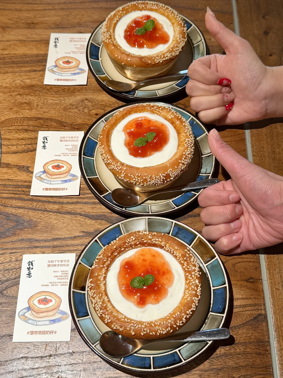 啊啊啊长沙终于有了!馕墩墩酸奶,杯刷到就来买了!烤的焦脆劲道的馕杯搭配酸奶,真的一口惊艳!!尤其是天冷的时候吃完羊肉火锅,再来份这个好舒服啊🥹 他家还有好多别家没有的甜品小吃也不错,芝士榴莲烤包子、烤羊腿、羊肉手抓饭……一吃一个不吱声!! 导航到📍钱如意·牛羊肉西北小馆