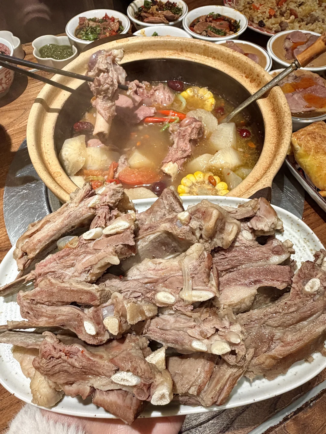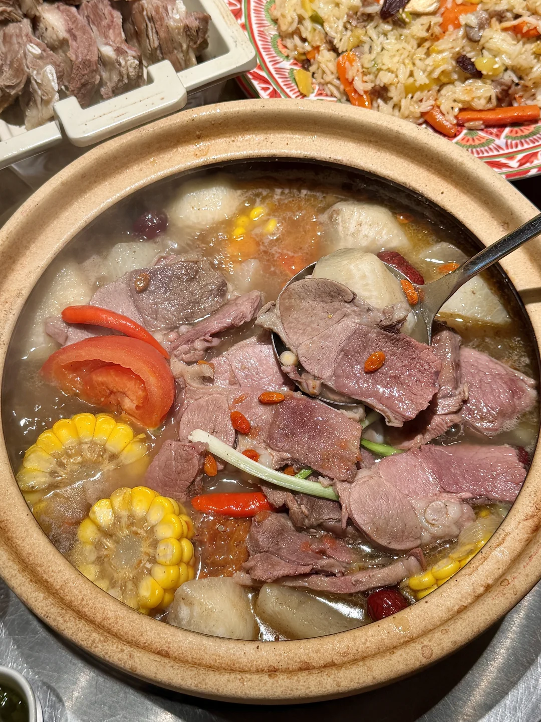 芳村花园对面,清汤羊肉煲相当美味!除了常规的玉米白萝卜甘蔗,这里面加了椰子肉、沙