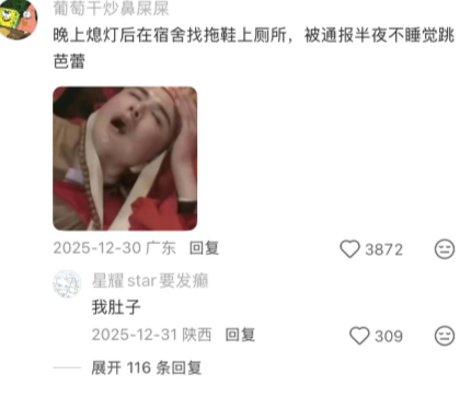晚上熄灯后在宿舍找拖鞋上厕所,被通报半夜不睡觉跳芭蕾
