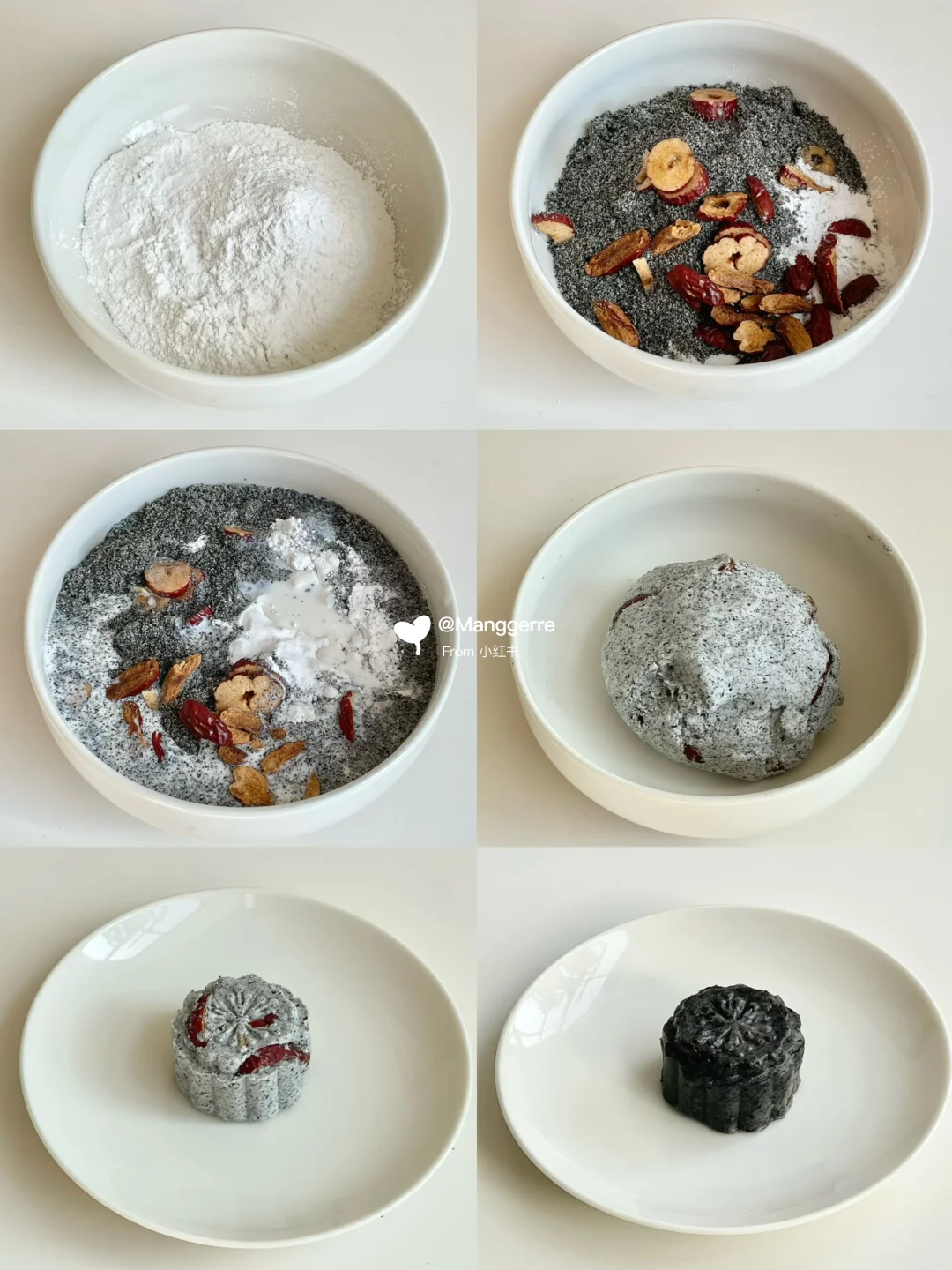 早晨来一碗热乎乎的浓稠黑芝麻糊,糯叽叽的汤圆沉在碗底,一咬流心!再配两块刚蒸好的黑芝麻红枣糕,松软香甜还夹着枣肉~传统味道就是实在,一碗下肚全身都暖啦~😋 🤎黑芝麻红枣糕🤎 【食材】: 糯米粉150g、黑芝麻粉50g、红枣200g、 糖30g、牛奶150g 【做法】: 1、碗中放入黑芝麻粉、糯米粉、去核红枣块、糖加入牛奶搅拌均匀 2、搅拌好的面团分成50g大小的面团放入模具中按压成型 3、红枣糕放入锅中大火蒸10-15分钟左右即可