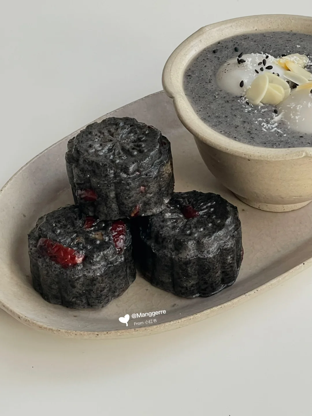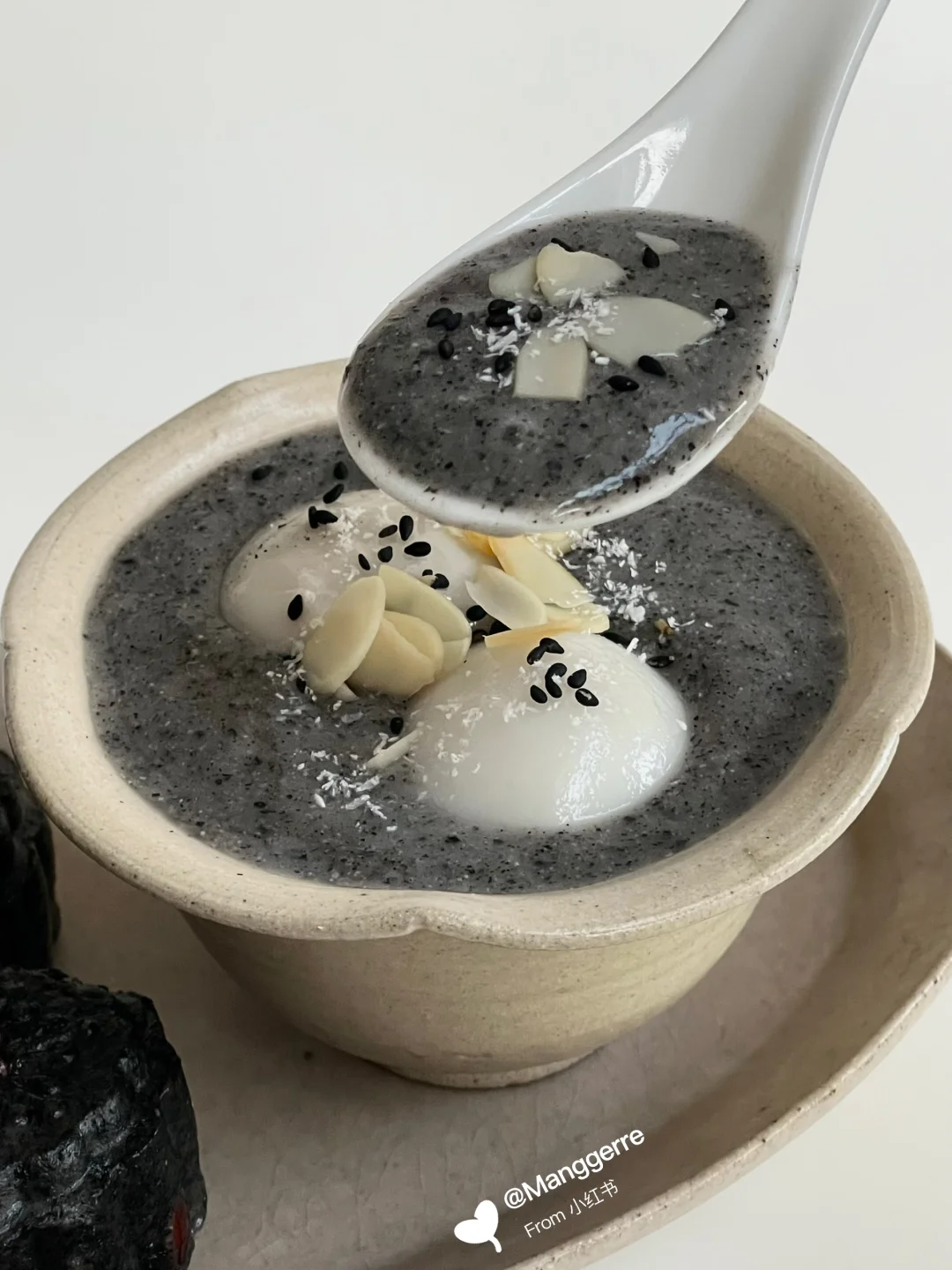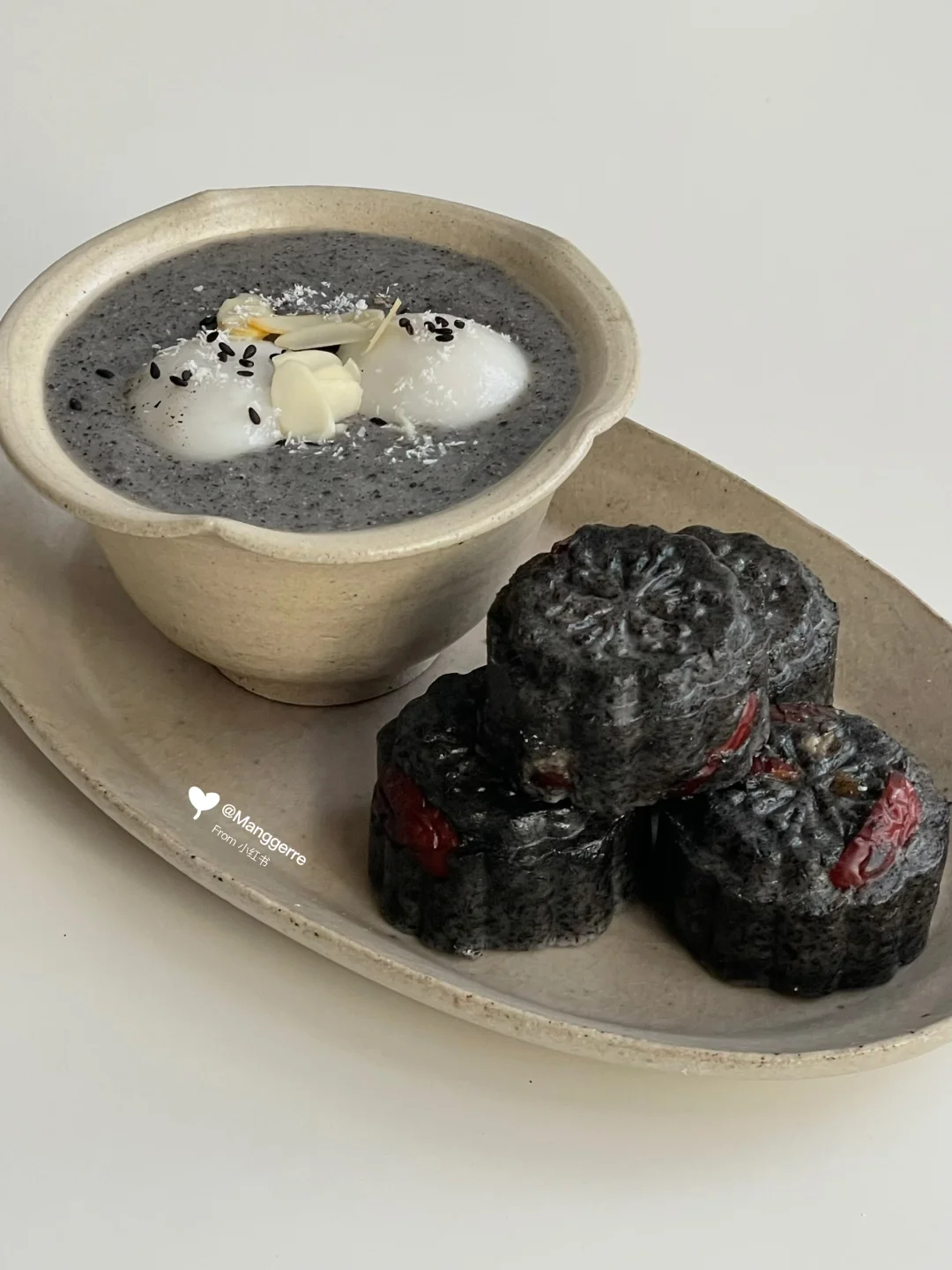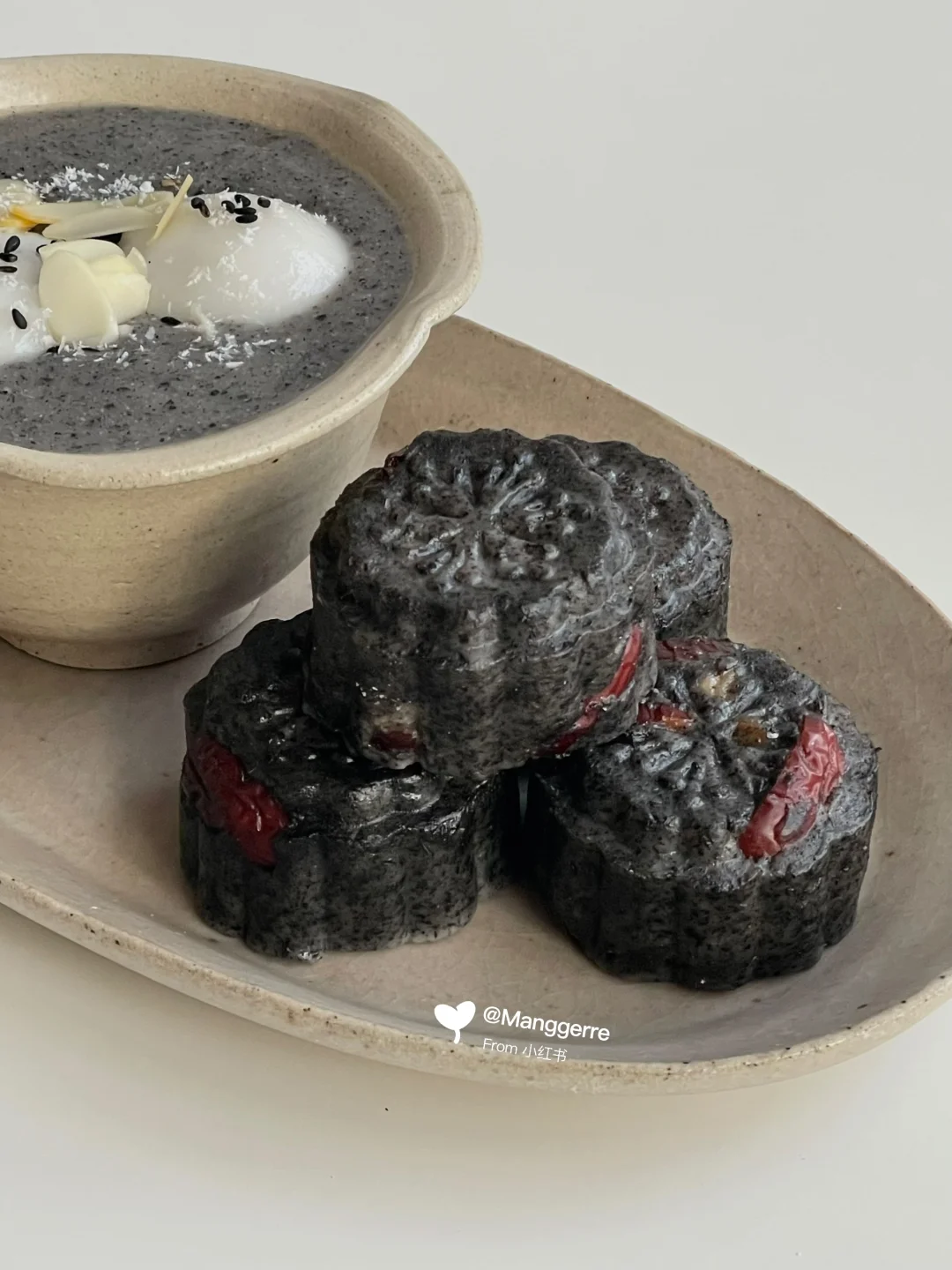 中式早餐|黑芝麻汤圆➕黑芝麻红枣糕