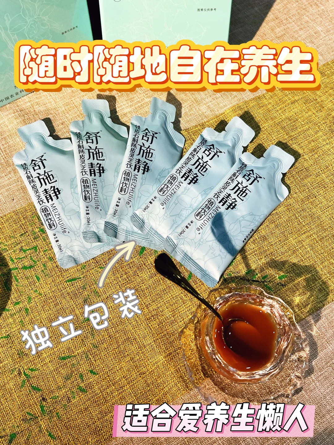 ✅独立包装太适合懒人和忙人了,放几袋在包里,撕开就能喝,口感清爽带着草本香,一点也不甜腻🥰