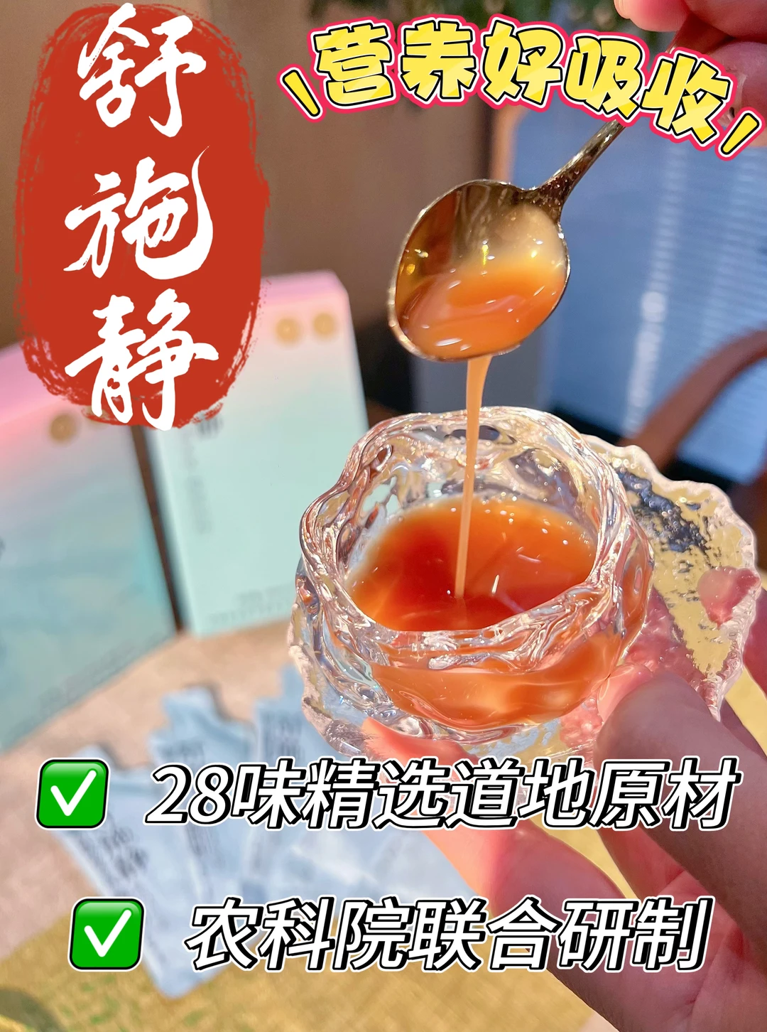✅ 它里面有28味精选原材,铁皮石斛、陈皮、灵芝这些经典成分都在,还搭配了牛脾肽和益生菌,从pi胃开始调理,帮助💦显气代谢