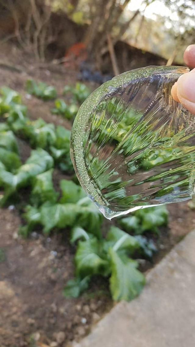 1月7日上午,闽侯县大湖乡,薄冰和薄霜覆盖在田间的蔬菜上(通讯员林云/图)