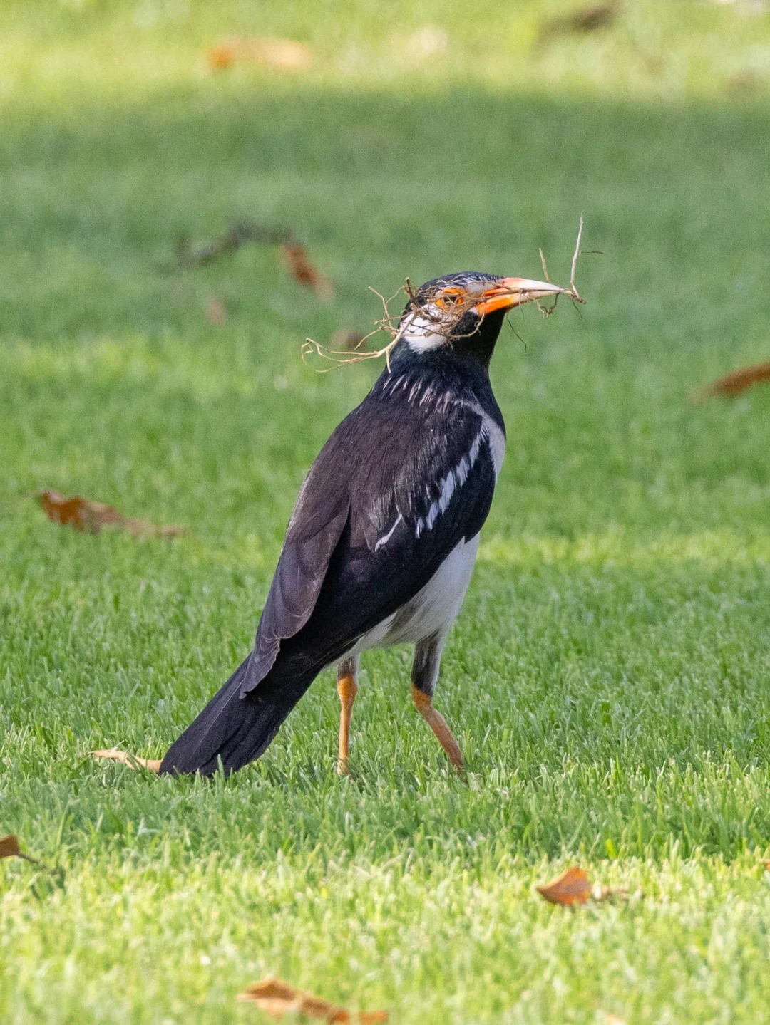 原创拍摄于2025.05 斑椋鸟,Indian Pied Myna,雀形目椋鸟科斑椋鸟属。广泛分布于印度次大陆,在东南亚比较常见,但是在我国是边缘分布,主要在云南西部,比如“椋鸟之乡”那邦。 斑椋鸟羽毛黑白相间,黄色带红基的喙特别显眼,颜色搭配很高级。