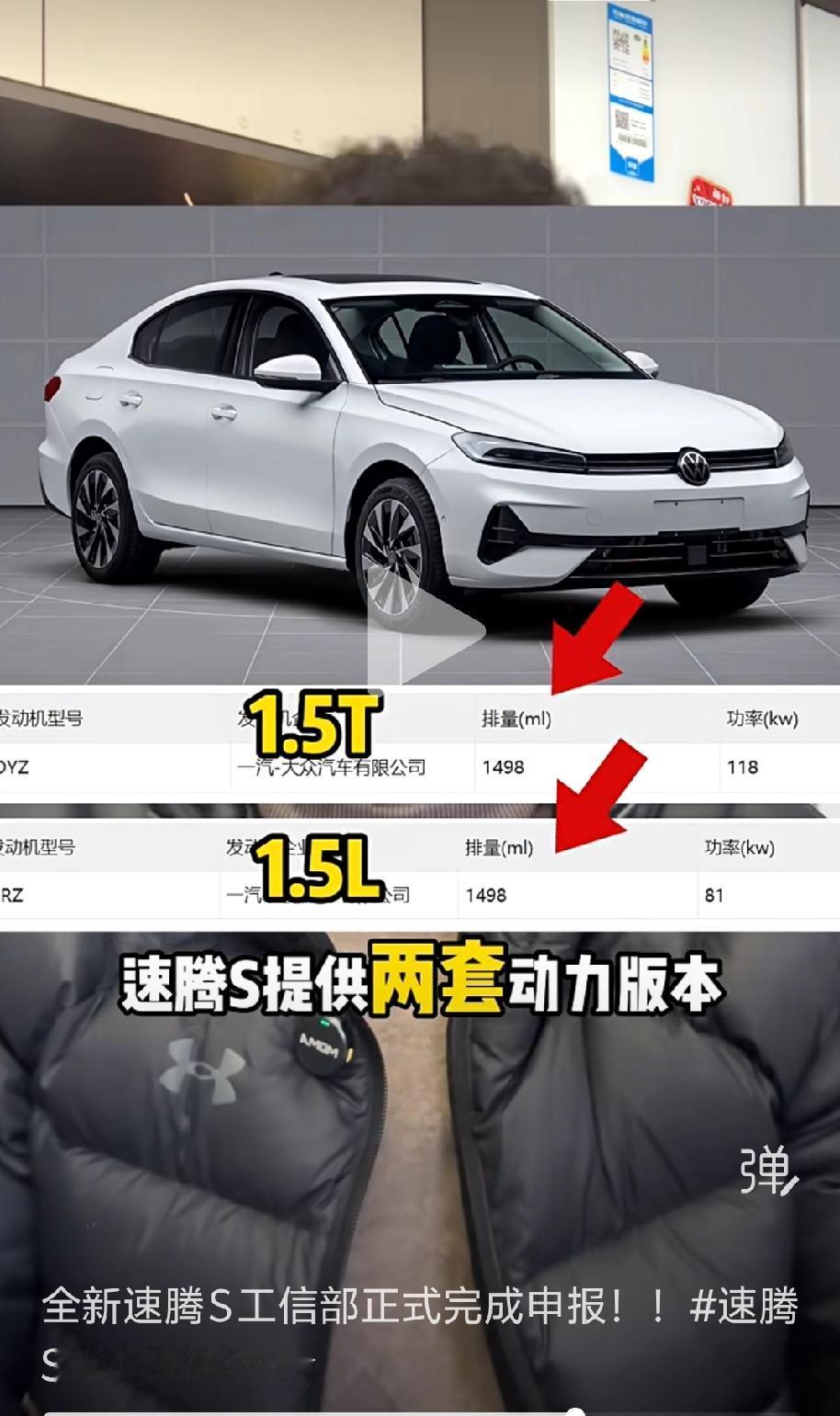 新款速腾S工信部申请,速腾的销量要回到巅峰了。 看看,被我说中了吧?朗逸PRO补齐短板,速腾慌了,立马申请出新款。 当初朗逸pro上市,我就发过一篇文章,后轮升级成独立悬挂的朗逸竞争力再次提升,速腾除了车长一点点几乎没有什么优势可言。而且隐藏门把手,让许多人直接留言不买。 大众能在国内兴盛这么多年,除了产品质量过关外,及时调价和外观配置不喜欢就改的优点是常胜的秘诀。 想必是一汽大众也看到了,评论区对新款速腾门把手的反响比较激烈,既然你们不喜欢隐藏把手,那就改回来么?一汽大众的扛把子车型那必须要稳住。 于是乎速腾S来了,首先这个S可是大众认知里的Sport,因为新款速腾里有两种动力系统,包括1.5自吸发动机。 有人肯定会问了,那这个S是啥意思?看到新款速腾的车身长度就明白了,这个S其实可以理解为速腾的缩小版,也就是妥妥的A级没有+。或者可以理解为宝来的替代品,毕竟如今宝来的风光不再,那就只能完善速腾的产品型号。 速腾毕竟比宝来高一个级别,哪怕是车身短一点点也是速腾,而且有了1.5自吸发动机,相信一定会拉回一汽大众的部分销量。 而且虽然说速腾比朗逸贵一万,但对于许多买车人来说依然是很现实的差距,如果出这样一款跟朗逸价格差不多的速腾,而且还是自吸发动机,这样速腾的竞争力又提高了。不得不说大众对于市场的反应是很迅速的,相信这款速腾S一定会有人愿意买单。汽车 @懂车帝原创 @汽车天涯 @汽车之家