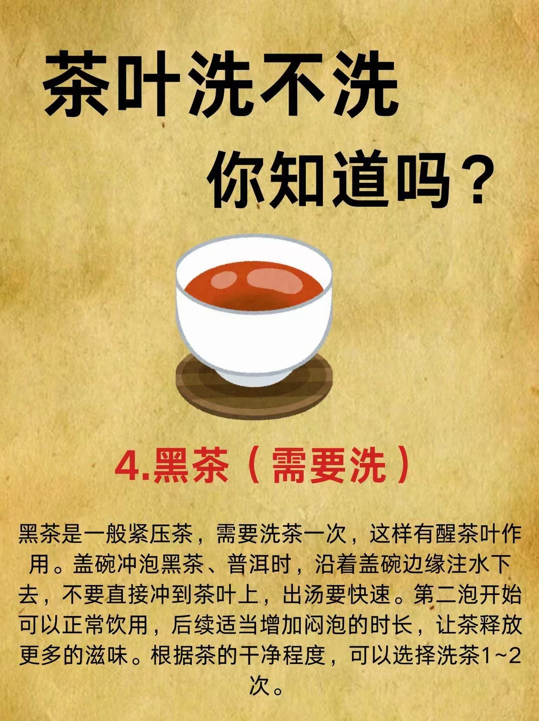 ✅ 建议:洗1–2次,快进快出;紧压茶可稍延长到5–10秒,但别久泡。