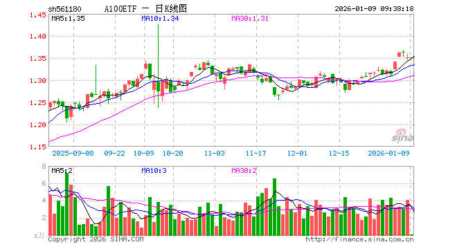 1月9日,A100ETF(561180)开盘涨0.00%,报1.351元。A100ETF(561180)重仓股方面,宁德时代开盘跌0.01%,贵州茅台涨0.33%,中国平安涨0.31%,招商银行跌0.10%,紫金矿业跌0.83%,美的集团涨0.72%,中际旭创跌3.28%,长江电力涨0.04%,兴业银行涨0.29%,立讯精密跌0.56%。