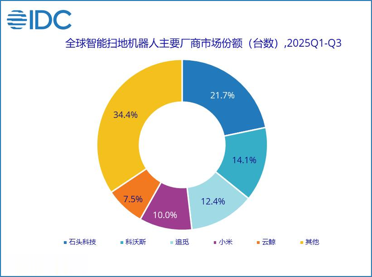如果说,对家庭场景的深度理解是石头科技的“主场优势”,那么其在高端旗舰产品上得到的量产验证,则是它早已握在手中的“先行者入场券”。当许多企业还在为算法寻找“身体”时,石头科技已经开始思考如何让这个“身体”更聪明、更有用。IDC数据显示,2025年前三季度,石头科技稳居全球智能扫地机器人销量冠军,全球市场份额高达21.7%,意味着在全球每卖出五台智能扫地机器人,其中有一台就来自石头科技。