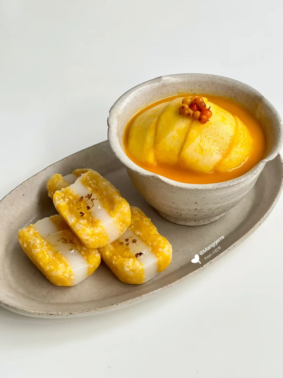 p2南瓜金花饺子➕南瓜浓汤🎃 p3南瓜冰皮月饼🥮➕南瓜牛奶米布 p4杨枝甘露浮花奶冻🥭➕桂花茶酥 p5沙棘橙香雪梨🍊➕桂花小米凉糕 p6南瓜山药糕🧡➕南瓜米麻薯 p7蛋香米糕➕南瓜姜黄奶💛