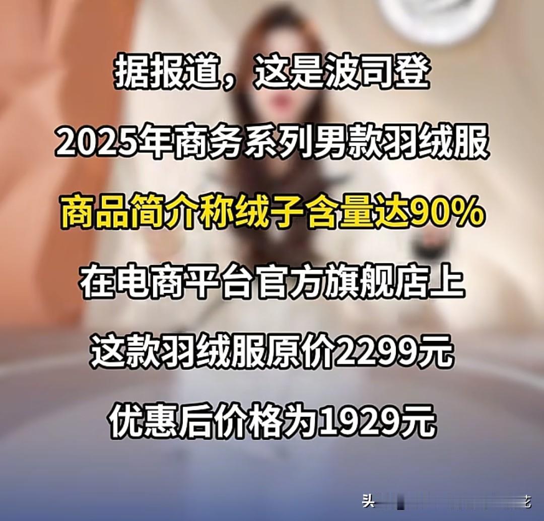 很多网友吐槽波司登品牌溢价过高,2299元波司登商务羽绒服充绒量仅86克,如此少