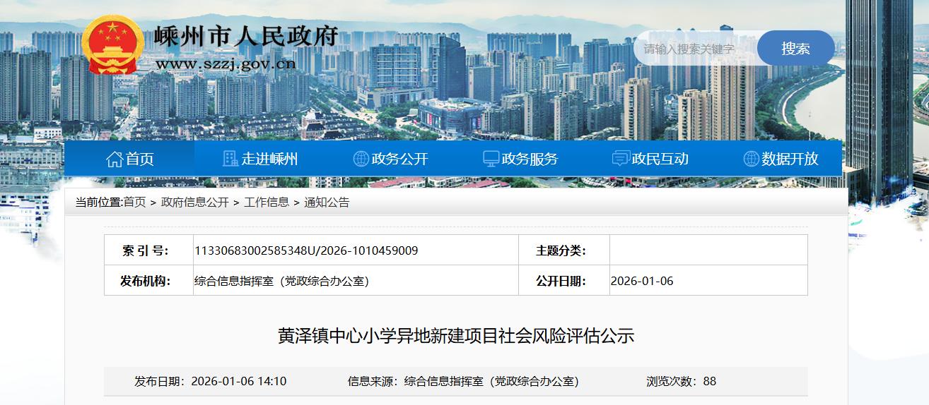 近日,绍兴嵊州市人民政府发布了一则《黄泽镇中心小学异地新建项目社会风险评估公示》。